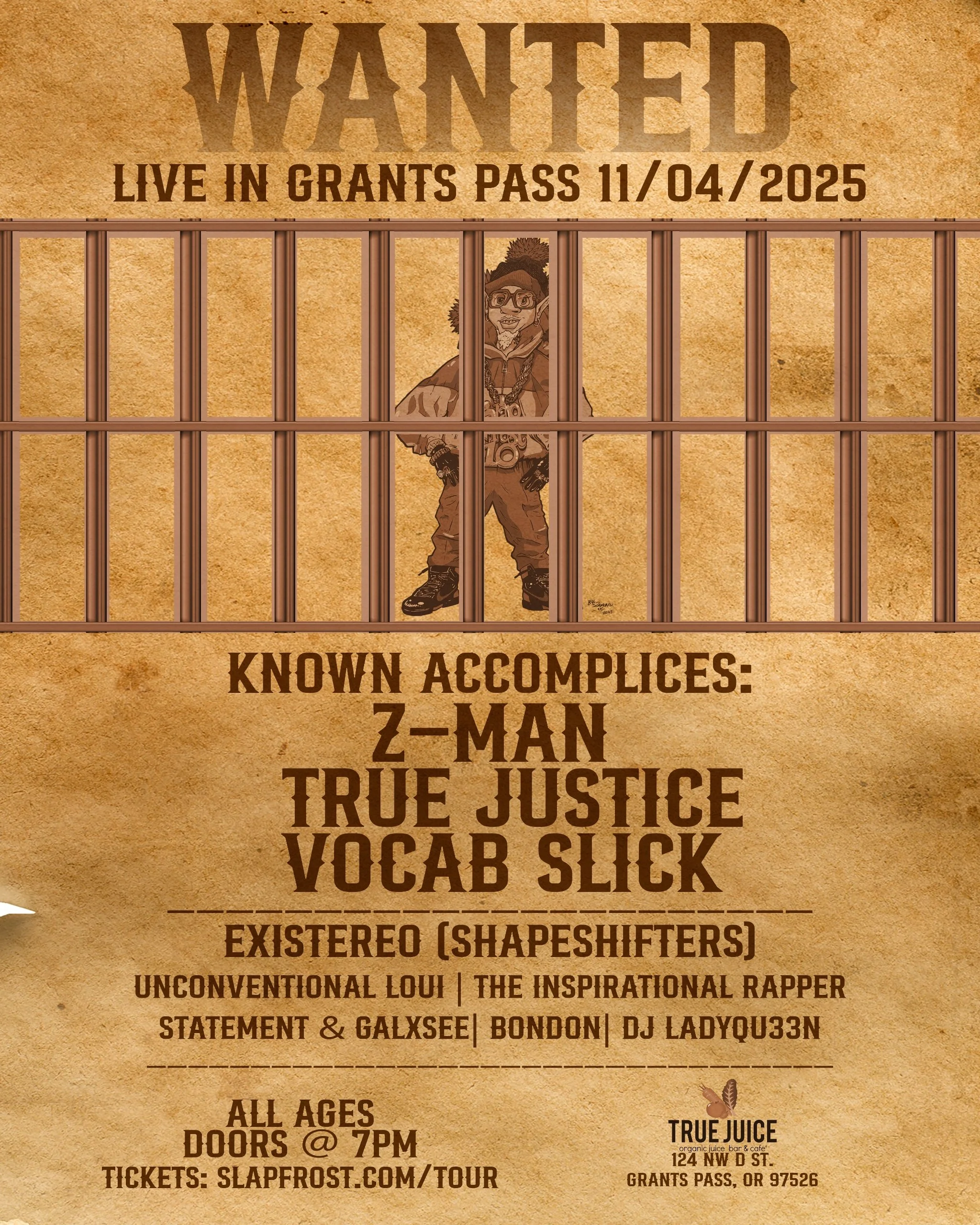 It's been a wild ride. The Slap Frost Tour was conceived by 3 friends in a garage in Richmond, California in 2014. Originally the goal was to get out of the greater San Francisco Bay Area to share the collective talents of a battle tested, veteran DJ, a reformed wordsmith and an exceptional entertainer. After the inaugural 12 city run throughout 7 states, True Justice, Vocab Slick and Z-Man realized this independent "rap vacation" could be a platform not only for established acts but for up and coming talent who have never been on tour before. In the subsequent years the Slap Frost Tour has traveled to 110 cities and 45 states producing a decade of incredible performances.